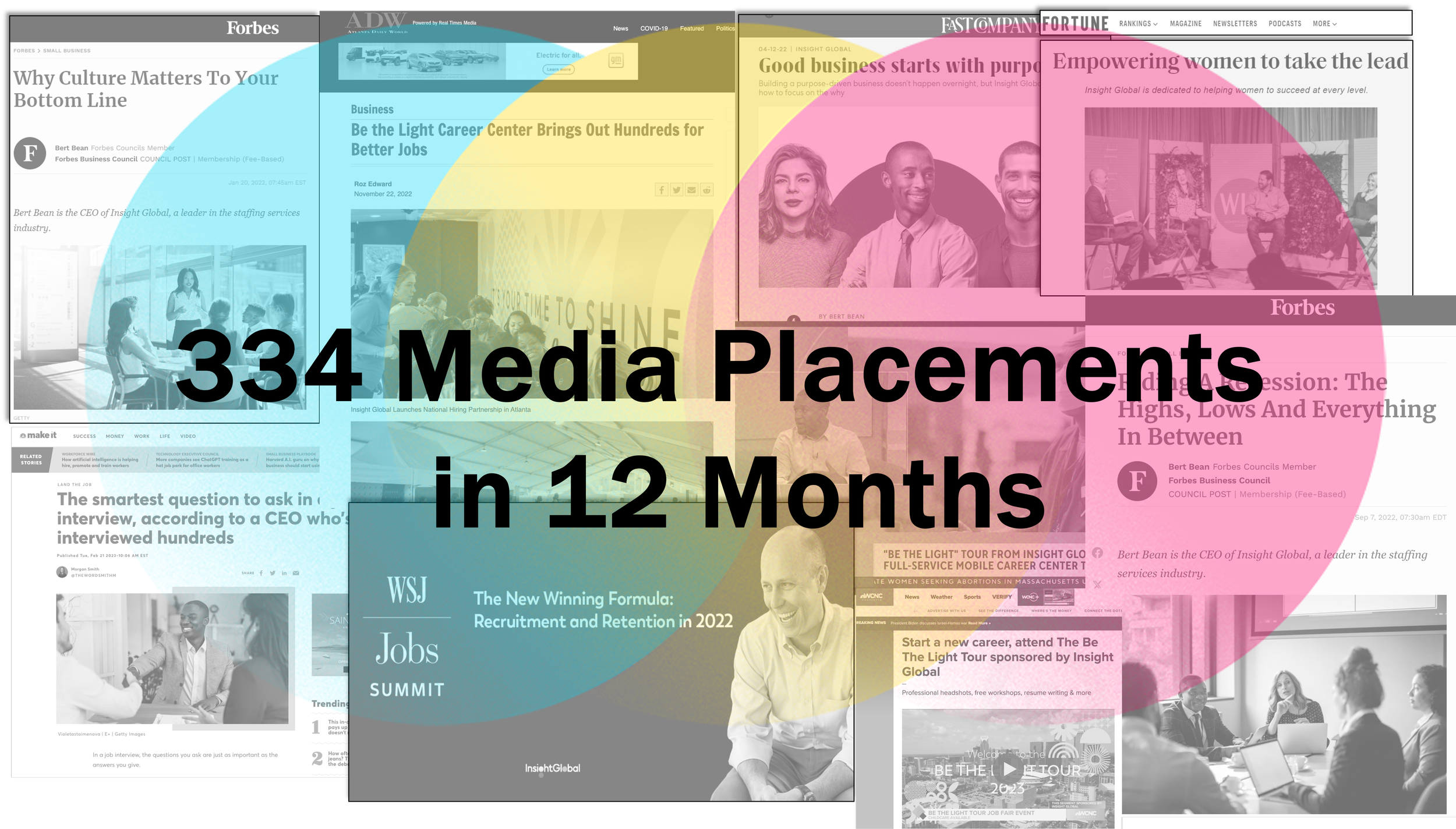 Insight Global is one of the world's largest staffing agencies, but until 2021, the company had not invested in external communications. With little brand awareness outside of its industry, a limited online footprint and virtually zero presence in the national media, Insight Global hired Approach to go behind the curtain to showcase the brand’s unique culture, incredible stories and pure dedication to changing people’s lives to a national audience. We executed a high impact communications campaign to shine the spotlight on the incredible work this team does every day.